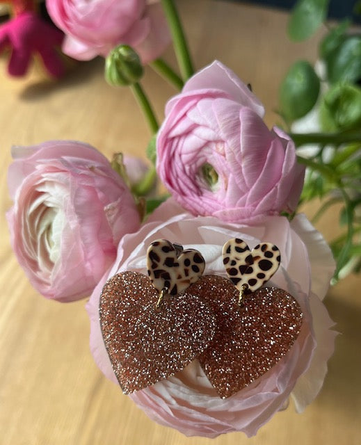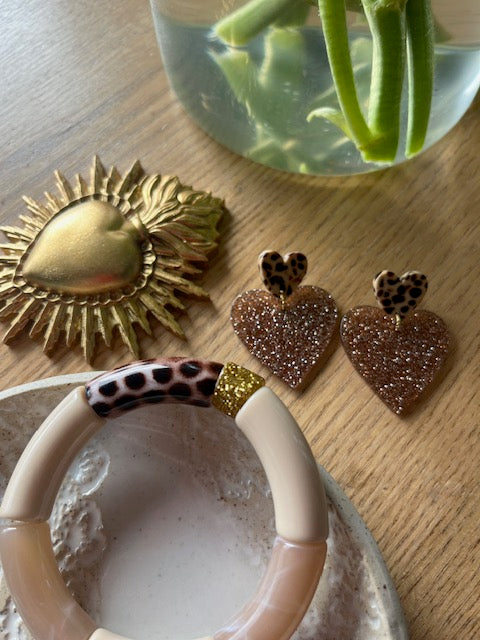 . Puces d’oreilles façon terrazzo en acétate • cœur GLITTER bronze