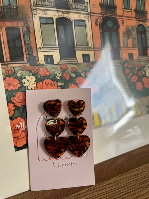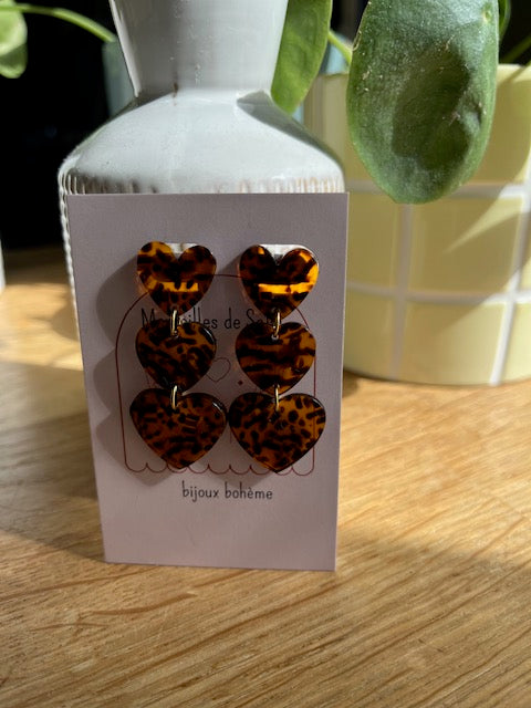 Boucles PARIS • en acétate version triple terrazzo ambré• 8GR•