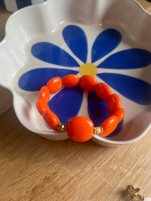 Bracelet VINTAGE élastiqué en perles acryliques (15mm)• perles en acier inoxydable • bain piscine et mer possible• 22 Gr•