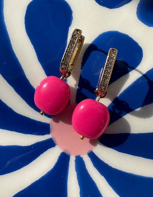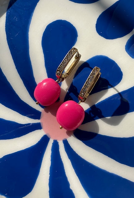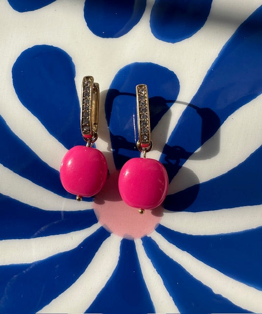 Créoles en acier inoxydable (18mm) et brillants • Breloque en acrylique rose •